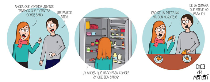 Quan vaig iniciar el projecte havia de tenir referents i vaig decidir dibuixar-me a mi i a la gent del meu entorn. El Chico del Monton és la meva parella, i la resta de personatges són la meva família i amics. Però les situacions que viuen aquestes persones no sempre les hem viscut nosaltres mateixos, també els hi atribueixo vivències d’altres persones. Chica del Montón no només sóc jo, som totes les persones.