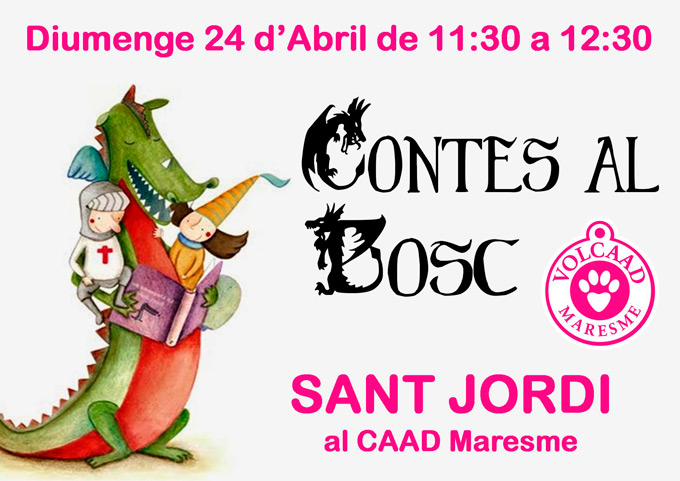 Aquest projecte s’iniciarà amb l’activitat “Contes al Bosc” que es realitzarà el diumenge 24 d’abril amb motiu de la festa de Sant Jordi. L’objectiu de l’activitat és donar a conèixer el centre CAAD Maresme i passar un matí familiar incidint en l’educació i la sensibilització envers els animals mitjançant els contes. Seguint un recorregut fàcil, i apte per tothom, ens endinsarem pel bosc que envolta el centre, creant un entorn màgic i fantàstic on petits i grans podreu gaudir de la narració oral de diferents contes.