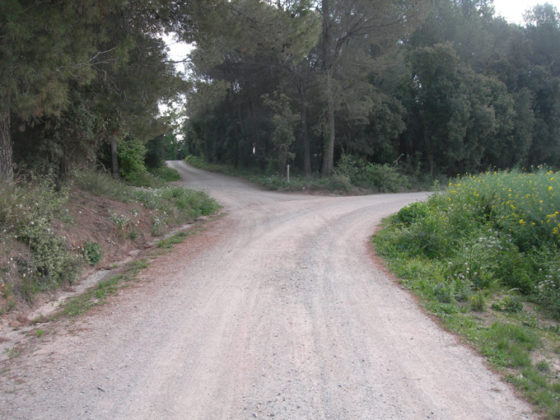 Passem pel Mas Avel·lí i no deixem la pista fins a trobar una cruïlla que gira lleugerament a ESQUERRA, la prenem deixant la pista per on veníem.